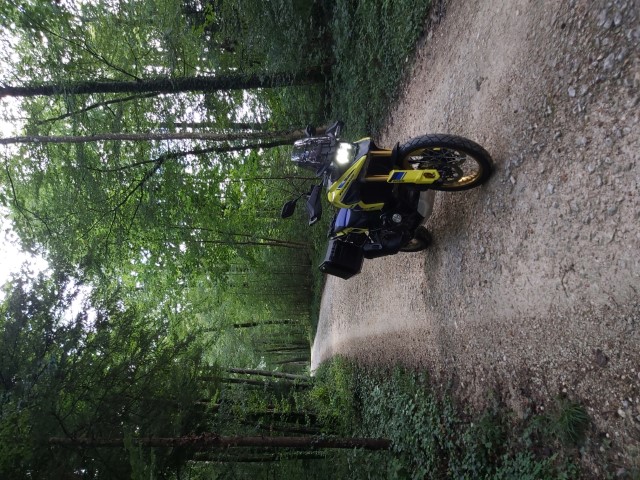 Der Termin den ich Anfangs erwähnte, ist ein Motorradausflug mit meiner Guggenmusik. Eine Vereinigung meiner Sommer und Winterbeschäftigung, sozusagen. Da nicht alle Guggenmitglieder einen Motorradführerschein haben, brauchte es ein paar Fahrer, die ihren Soziusplatz zur Verfügung stellten. Was ich auch tat, mit der Hoffnung auf etwas Unterhaltung während der Fahrt. Aus diesem Grund machte ich vor der grossen Guggenausfahrt noch eine Feierabendtour mit der Suzukisoziusexpertin, meiner Freundin. Wir machten eine kurze Feierabendtour durch die heimischen Hügel. Ihre Expertise zur Suzuki V-Strom 1050 DE Extrem war: «Der Bequemste, mit dem ich bis anhin mitgefahren bin!». Ich fragte, leicht überrascht: «Bequemer als meine alte Suzuki GS 1100 GK?». Und die Antwort war «Ja!».