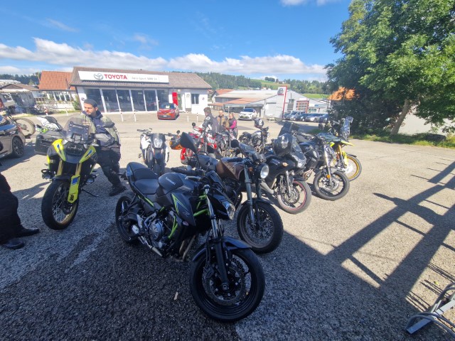 Eigentlich vermied ich, seit längerer Zeit, in Gruppen zu fahren. Ich hatte die Geduld nicht. Nun konnte ich das Ganze sehr gut geniessen und freute mich, wenn ich all die Motorräder vor mir sah, ich machte das Schusslicht. Macht man mal eine Pause kann man sich austauschen, blöde Sprüche klopfen und zusammen lachen. Auch viel mir auf, dass es von Vorteil ist, wenn man in einer Gruppe fährt und jemanden zum Quatschen hat. Aber man konnte sich nicht nur austauschen, sondern auch gemeinsam über das Motorrad freuen. Wir freuten uns auf jedes Dorfende, denn da spürte man die Kraft des V2-Motors besonders. Und der Klang, einfach toll. Ich würde behaupten die Suzuki V-Strom 1050 hat mit einer Sereinauspuffanlage den schönsten Klang in der Suzukifamilie. Aber nicht nur der Klang macht die Fahrt zum Genuss, denn auch Quickshifter, Griffheizung und Tempomat tragen ihren Teil dazu bei.