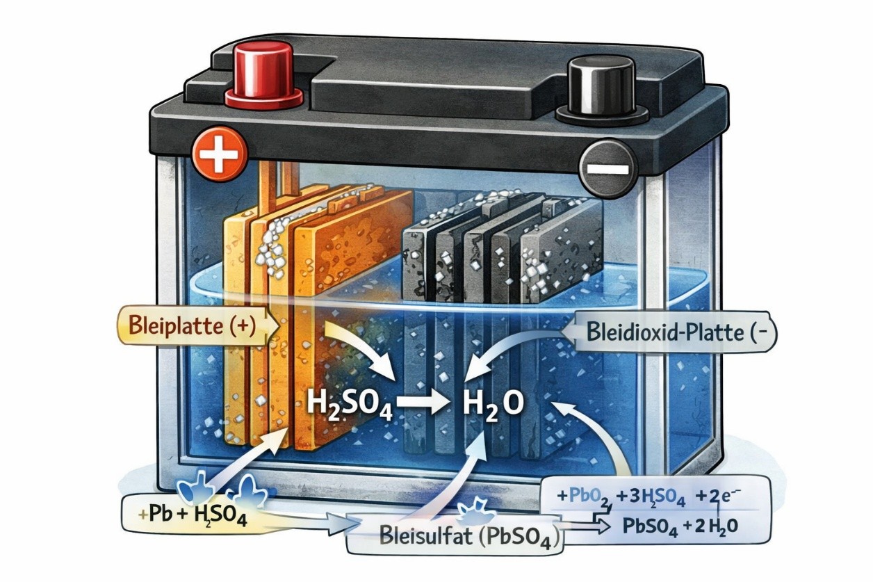 Die meisten Batterien bestehen aus Blei, Bleidioxid und einer Säurelösung. Beim Entladen reagieren das Blei und die Säure miteinander, sodass Elektronen entstehen und Strom fliesst. Dieser chemische Prozess steht nie ganz still, darum entlädt sich eine ungenutzte Batterie. Zudem gibt es vor allem bei neueren Motorrädern immer mehr Elektronik. Da kann es vorkommen, dass gewisse Teile immer leicht Strom ziehen. Ein weiteres Problem bei einer entladenen Batterie ist, dass sie bei tiefen Temperaturen einfrieren kann. Wenn die Batterie entladen ist, ist der Säureanteil verdünnt, somit steigt der Gefrierpunkt der Flüssigkeit. Das einfrieren ist ab circa minus fünf bis minus 10 Grad möglich. Beim Einfrieren können sich die Platten im inneren Verbiegen oder das Gehäuse der Batterie kann kaputt gehen.