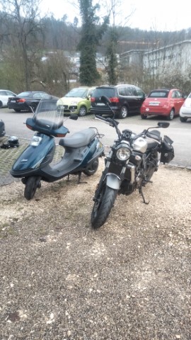 - Transportmittel: Egal was man transportieren muss, die Spacy ist der beste Begleiter. Wenn das Matieral nicht mehr ins Topcase passt, so kann dieses einfach entfernt werden und man hat einen Gepäckträger wo zum Beispiel zwei 24er Bierkartons Platz finden.