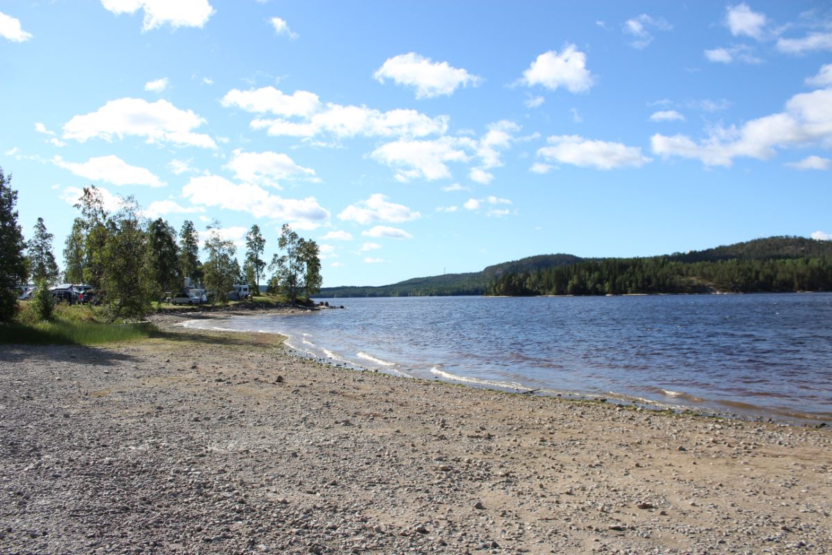Am Morgen ging es zuerst über Land. Aber die Kilometer wollen nicht weniger werden und ich möchte so schnell wie Möglich am Nordkapp sein, damit ich das gute Wetter noch erwische. Also fuhr ich kurz vor Mittag auf die Autobahn, die Kilometer werden weniger aber es sieht alles genau gleich aus. der erste Lichtblick, das Mittagessen, es gab Kedok mit Moos. Wurst mit Kartoffelstock, dazu eine Schrimpssauce, herrlich, die gute Laune war wieder da. Abends ging es dann auf einen wunderschönen Zeltplatz mit Seeanschluss. Endlich Baden, den es hatte um 19:00 Uhr noch gegen die 24 Grad. Mit fotografieren und schwimmen rundete ich dann den Tag ab und ging früh ins Bett.