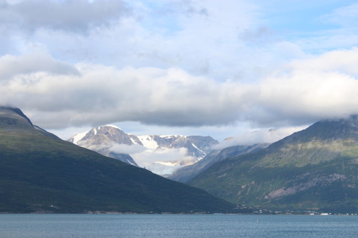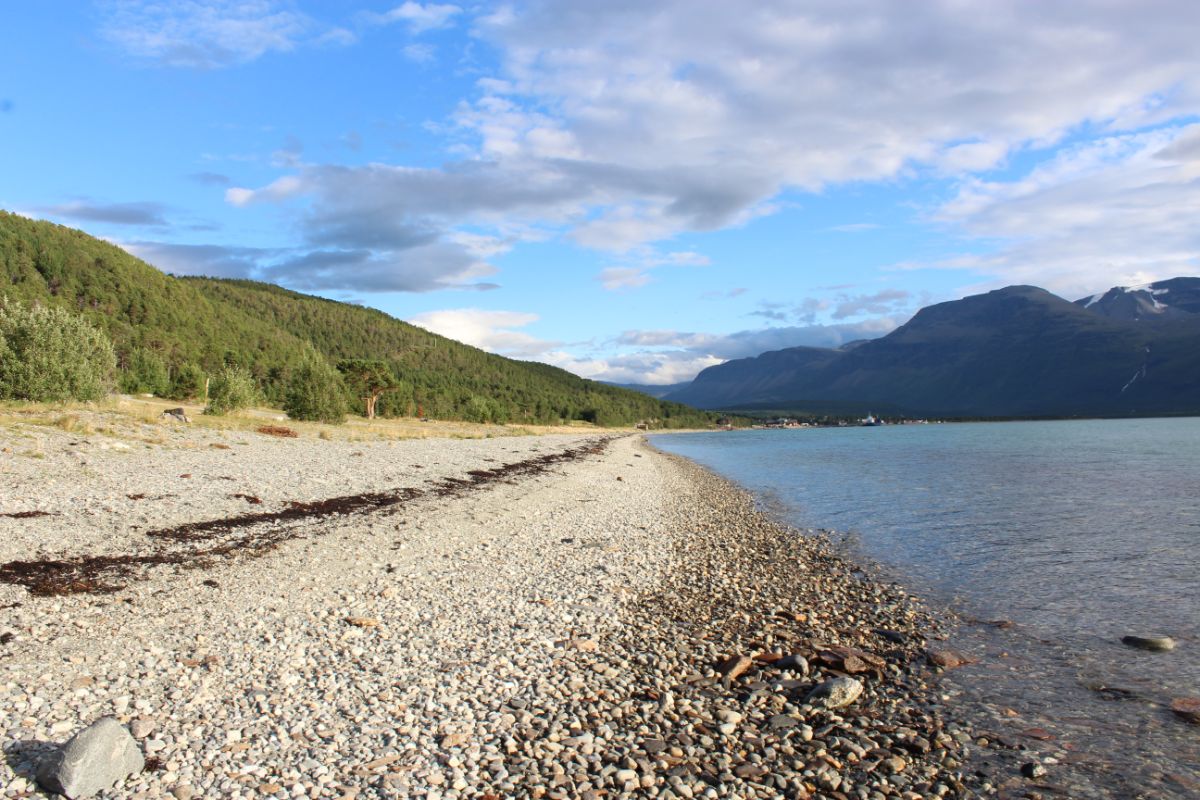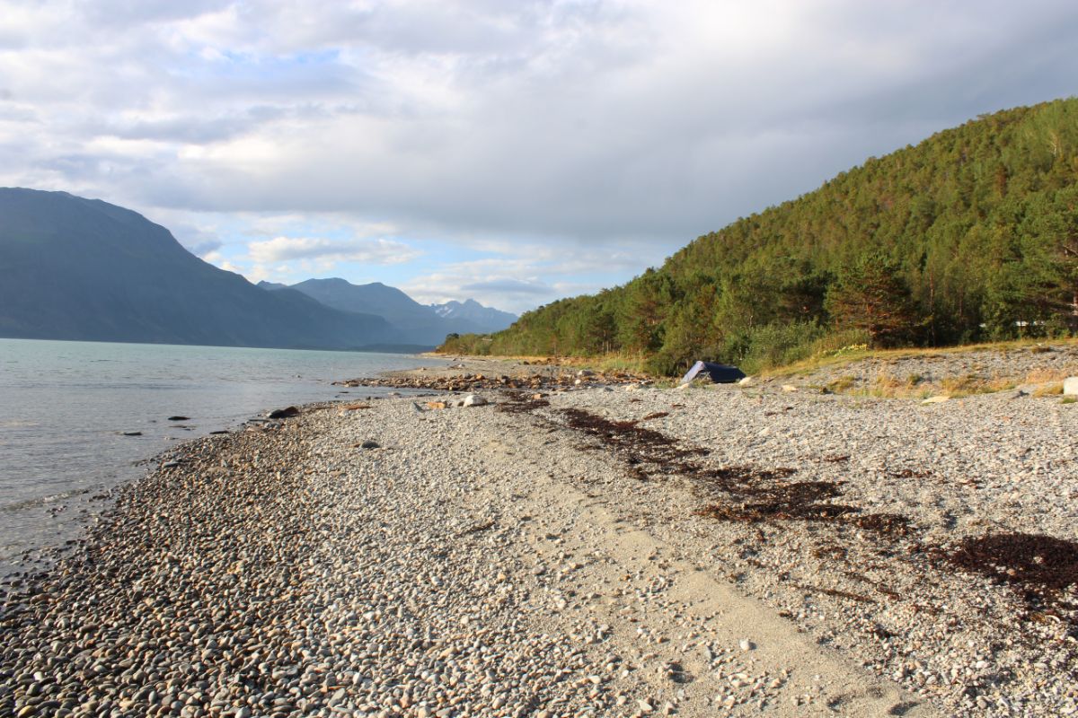 Am Abend übernachte ich an einem wunderbarem fjord, kuz vor dem Dorf Storfjord. Hier heisst alles Blablabla-fjord. Es ist wunderschön, man sieht Schneeberge, Gletscher und ist gleichzeitig an einem strand. Während ich mein Zelt aufbau kann ich wahle beobachten, leider waren sie zu weit weg um sie fotografieren zu können. Der ganze Tag war trocken ausser als ich Zelt lag fieng es an zu regnen.