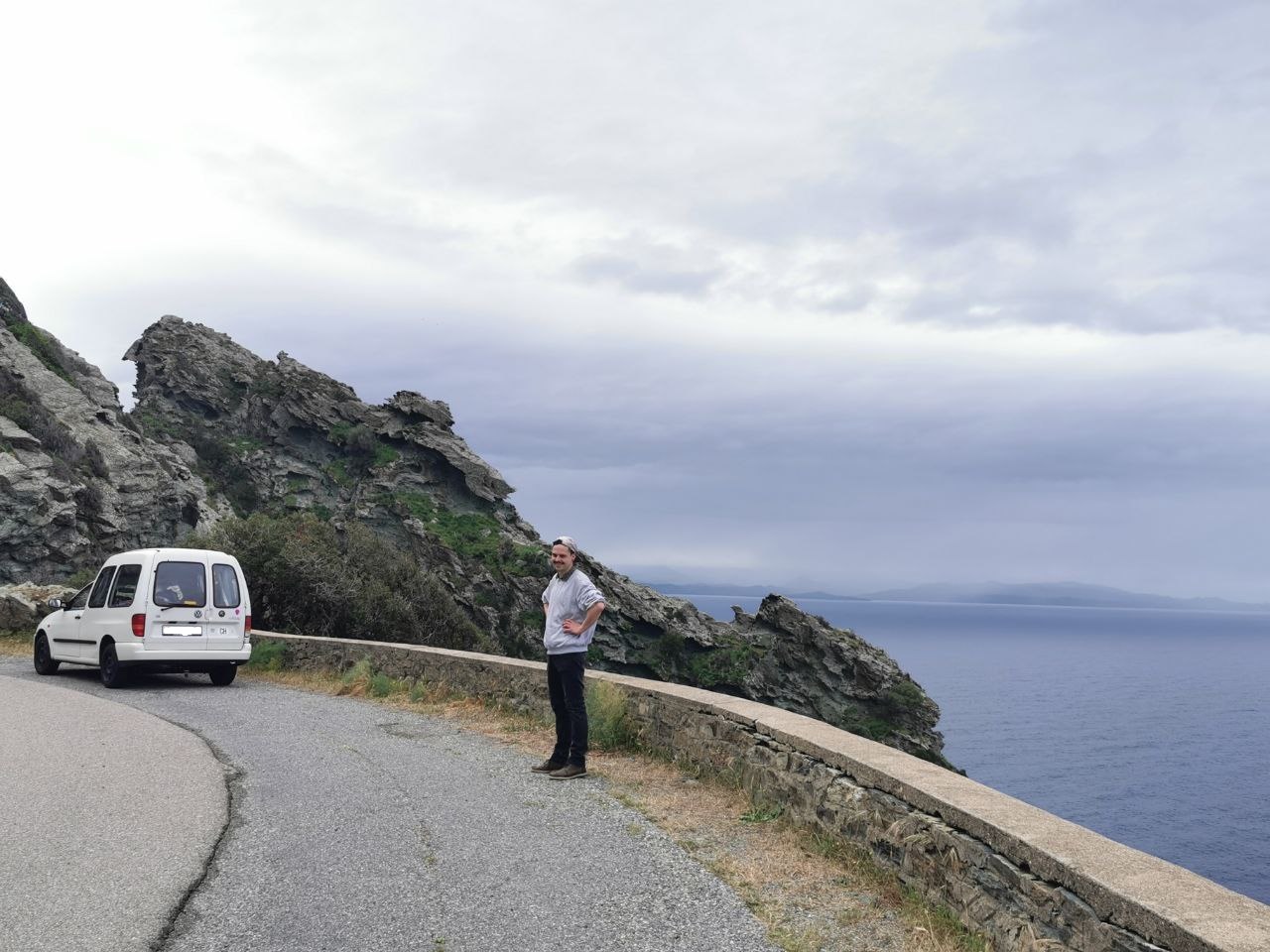Der alt bekannte Ort kam immer näher und es fühlte sich für mich immer mehr wie ein zurück kommen an. Es handelt sich um den Ort Porto. Auf meiner Europatour 2018 war hier einer der einzigen noch offenen Campings, der Sole e Vista Camping. 2018 war ich am Ende von meiner Tour in Korsika, ich hatte den Reisekoller und verbrachte ein paar Tage auf dem Camping Sole e Vista mit Karten und Tagebuch schreiben und mit baden. Nun waren wir wieder hier und ich konnte meiner Freundin diesen mir vertrauten Ort zeigen, hmm darüber freute ich mich sehr. Der Camping befindet sich am Hang und man hat eine wunderbare Aussicht. So blieben wir auch dieses Mal zwei Tage. Unten in der Bucht gab es viele Restaurants, ganz herzig. Am zweiten Tag versuchten wir eine Rundwanderung zu machen, denn die Berge hier laden zum wandern ein. Wir erwischten den falschen Weg und mussten so den gleichen Weg wieder zurück gehen, schön war es trotzdem. Den Nachmittag liessen wir am Strand ausklingen. Zum richtig baden war es jedoch zu kalt, für schnell rein und raus reichte es jedoch. Die Kletterer an den Felsen schienen mehr Spass an dem sonnigen Wetter zu haben. Von 2018 gab es ein Foto in einer Ausweichbucht mit Valentina, die Yamaha XSR 700 die mit mir damals unterwegs war. Dieses Foto stellten wir nach den zwei Tagen mit dem Caddy nach, als es weiter ging in Richtung Süden....