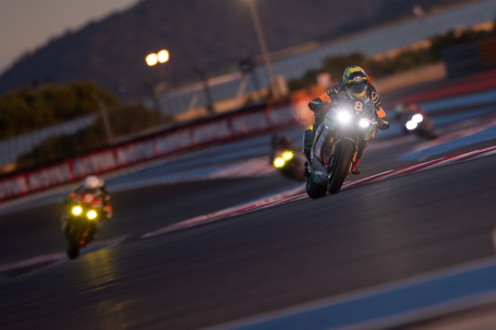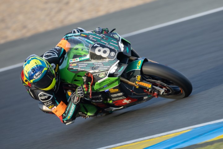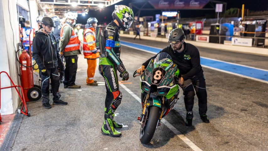 Ja, haargenau. Der einzige Unterschied, in der Superbike muss das Motorrad 24 Runden halten, bei uns 24 Stunden. Deshalb haben wir keine Superbikemotoren drin, weil die halten die in der Regel 1000 bis 1500 Kilometer und dann sind die Motoren durch.