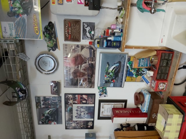 Schon lange verfolge ich das schweizer Langstreckenteam Bolliger. Ich entdeckte sie als Horst Saiger noch für das Team fuhr und von jedem Rennen ein Video auf Youtube veröffentlichte. Je länger ich sie verfolgte, desto mehr Fragen kamen in mir auf. Und so nahm ich allen Mut zusammen und fragte beim Team Bolliger nach, ob sie an einem Interview interessiert wären. Kevin Bolliger, der Teamchef, antwortete mir schon bald und ich durfte ihn in der Werkstatt des Teams besuchen, irgendwo im Kanton Bern. Ich freute mich sehr. So fuhr ich an einem Mittwochabend mit meinem Caddy in Richtung Biel. Ich freute mich sehr. Dort angekommen wurde ich von Kevin und der Werkstattskatze freundlich begrüsst. An den Wänden der Werkstatt sind unzählige Bilder aus der nahen und fernen Vergangenheit von Motorräder, Rennen und Rennfahrer zu sehen. In der Mitte des Raumes standen drei Hebebühnen auf einer Stand eine Kawasaki ZX-10R und auf der anderen eine Kawasaki ZX-7. Dahinter sind Werkbänke mit unterschiedlichsten Motorradteilen wie Felgen oder Motoren zu sehen. Auch der ausgebrannte Motor aus Bol d'Or. Nach den ersten beantworten Fragen, tauchte auch Kevins Vater, Hämpu auf. Der frühere Teamchef ist nun im Hintergrund tätig und unterstützt Kevin. Für das Interview führt mich Kevin in die über der Werkstatt liegende Bar, "Hämpus Bar". Und da waren noch viel mehr Zeitzeugen vorhanden. An der Decke hingen alte Kombis, überall waren Pokale zu sehen es gibt eine Leinwand, dazu kommen wir später noch und eine Bar. An diese Bar setzten wir uns und ich begann Kevin mit Fragen zu löchern.