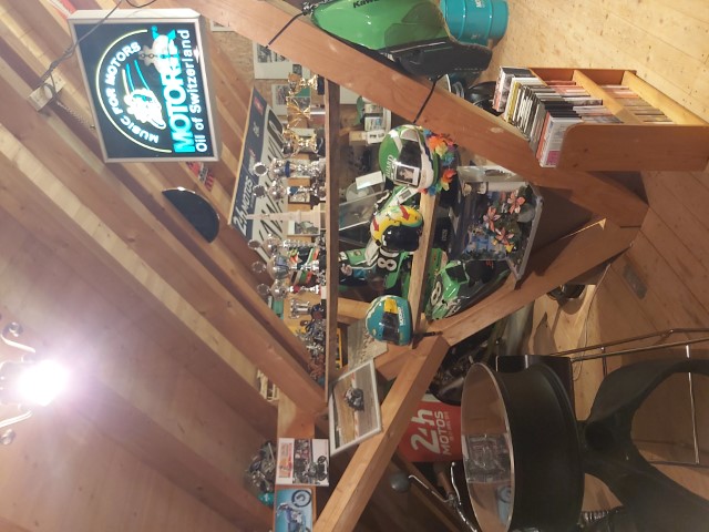 Nein, hier oben ist dann recht voll und es sind dann 20 bis 30 Menschen hier in der Bar, die unsere Langstreckenrennen aus dem bernischen Limpbachtal mitverfolgen. Hämpu grilliert unten und meine Mutter ist hier oben am Buffet. Die Leute aus dem Dorf rufen vor dem Rennen meiner Mutter an und teilen, mit was sie mitbringen. Einer bringt Zopf, ein anderer bringt Lachs, das ist dann ein halbes Dorffest hier oben. Während einem Rennen ist hier durchgehend offen, du hast teilweise Leute die mit den Schlafsäcken kommen und hier auf einem Campingstuhl oder Liegestuhl schlafen. Manchmal hat es auch draussen ein Camper oder zwei. Je nachdem zieht meine Mutter durch. Wenn um halb 6 Uhr morgens der letzte geht und die ersten um halb 7 wieder kommen, dann geht sie zum Becker hinten in die Backstube rein und holt Gipfeli. Klar in Bol d'Or dieses Jahr(das Team Bolliger musste abbrechen), hatte sie dann irgendwann Feierabend gemacht. Grundsätzlich ist es immer bedient auch, wenn wir nicht oder nicht mehr fahren. Sogar in Barcelona wo es keine offizielle Liveübertragung gab, hatten wir eine Cam in der Box, da konnte man in Hämpusbar Livebilder aus der Box sehen und hatten einen gemütlichen Abend. Und auch Suzuka schauten wir hier und es waren am Schluss trotzdem 10 oder 15 Nasen da, obwohl wir nicht am Start waren.