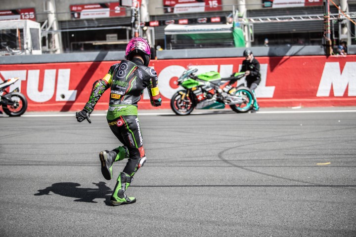 Man kennt sich in der Szene. Man hat sich als Team einen gewissen Namen, einen Ruf, verschafft, so dass die Fahrer sagen, hey ich will mal für euch fahren. Lustige Anekdote: Nico hatte sich schon ein Jahr vorher bei uns beworben, dann habe ich gesagt nein das wird nichts, weil du fährst aktuell BMW und BMW-Fahrer können in der Regel nicht Kawasaki fahren. So habe ich mich für Jan entschieden und Nico wechselte in die IDM und fuhr dort auf einer Kawasaki. Als sich ende Saison bei mir ein Fahrer verletzte, rief ich Nico an und sagte ihm, dass ich gesehen habe wie schnell er mit einer Kawasaki fuhr, willst du bei uns fahren? Er lachte und meinte, dass ich vor 8 Monaten nichts davon wissen wollte aber er käme gerne. Und so kommt man zu Fahrern, weil man sich irgendwann kennen lernt. Ich sehe ja auch die Fahrer die aus der Supersport WM, MotoGP oder Moto2 rauskommen, weil sie da nicht mehr genug gut sind, wie Alex Torrero mein Fahrer der aus der Moto2 kam. Er wurde mir via spanischen Kollegen empfohlen. Eigentlich ein ganz normaler Bewerbungsprozess.