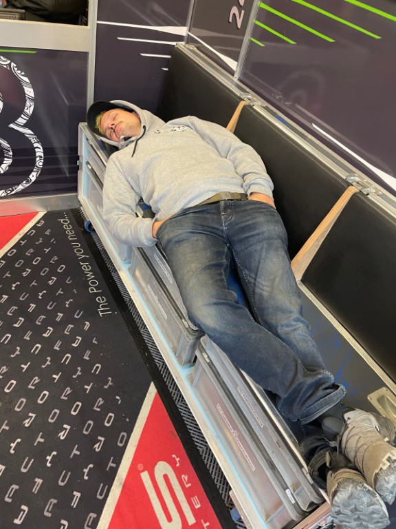 Und schon war 3 Uhr und das halbe Rennen war durch. Nun wurde jede freie Fläche in der Box für ein Nickerchen genutzt. Auch mir wurde nahegelegt, dass meine Augen nach Schlaf schreien würden und ich legte mich für weitere 20 Minuten hin, dieses Mal in den LKW-Anhänger. Es wurden 40 Minuten.