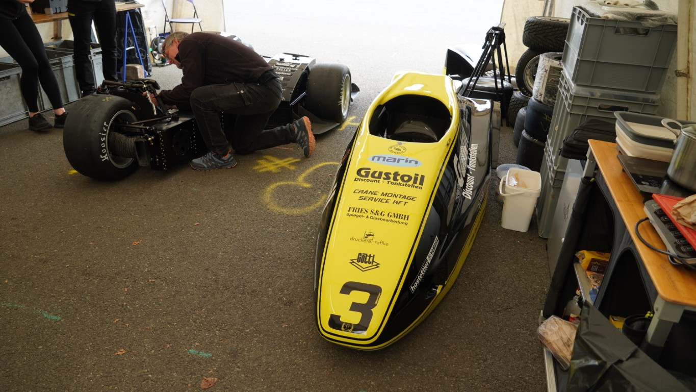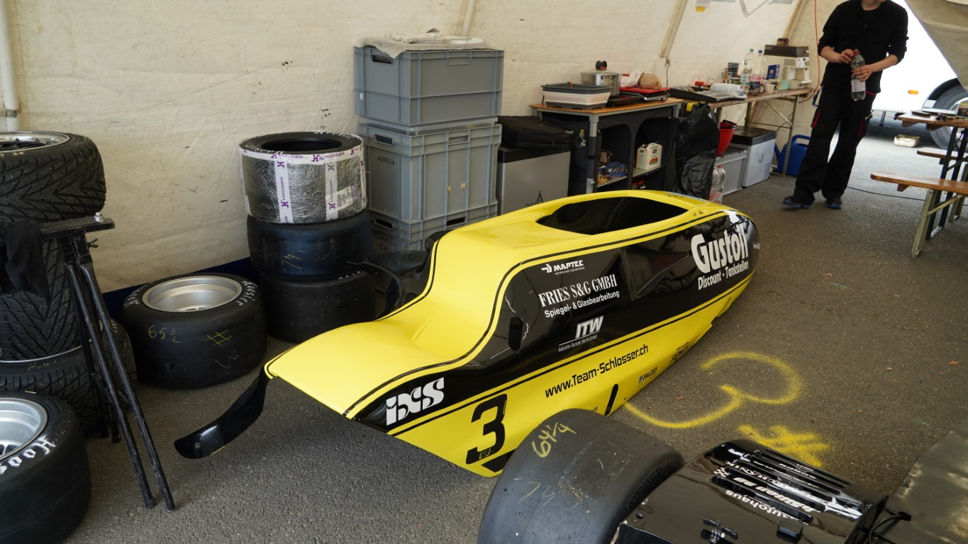 Ich nahm meinen ganzen Mut zusammen und stellte mich kurz vor. Markus Schlosser, der Fahrer, war erstaunt, dass ich nichts von ihnen wusste. Trotz anstehendem Training nahm er sich kurz Zeit für mich und beantwortete meine Fragen. Die Seitenwagen sind geklebt und vernietet. Angetrieben werden sie von einem Yamaha R6 Motor. Für diese Meisterschaft ist ein Motor mit 600 Kubik vorgeschrieben. Hauptsächlich wird mit dem R6 Motor gefahren, es gäbe aber ein Team, das einen Kawasaki Motor hat, meinte Markus Schlosser. Ich schoss noch ein paar Bilder, bedankte mich und verschwand mit riesiger Freude.