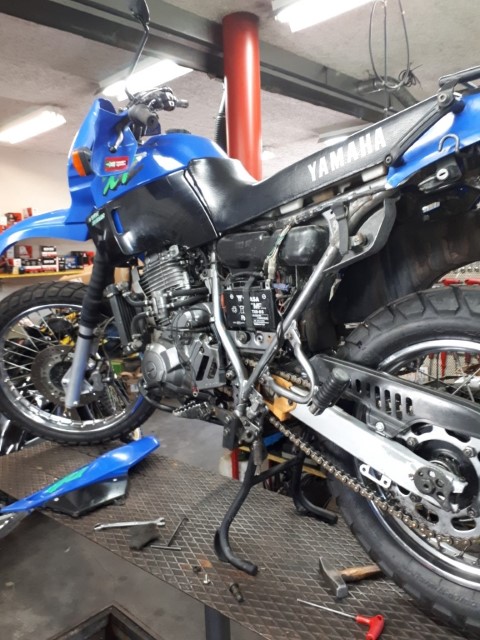 Als ich während Corona meine XT für die MFK fertig machen wollte, hatte er leider keine Zeit. Er stellte mir aber die eine Hebebühne, das Werkzeug und vor allem sein Wissen zur Verfügung. So arbeitete ich für zwei Wochen jeden Nachmittag an meiner Yamaha XT 600, Luki zeigte mir dabei, wie ich die XT bereit machen und aufhübschen kann. Das war die tollste Schrauberzeit, soviel Schrauber und Motorradgeschichten konnte ich gar nicht merken. Sie fiel bedauerlicherweise bei der ersten Prüfung durch, weil ich die Ölschraube nicht richtig angezogen hatte. "Das passiert den Besten", meinte Luki. Beim zweiten Anlauf kam ich dann ohne Probleme durch.