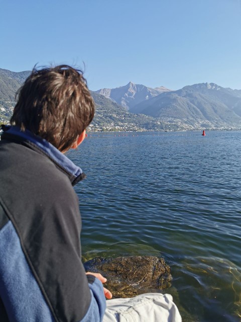 Am Mittag hiess es dann aber leider, schon wieder, adieu. Wir machten uns auf den Weg nach Hause, wobei ein letzter Stopp im Tessin geplant war. Die Fahrt bis Como verlief ganz gut. Bei den Zahlstellen waren wir schon ein eingespieltes Team. Ich fuhr nah an das Bedienelement und meine Freundin machte dann die Zahlung, so kamen zügig wieder weg. Doch schon früh vor Como wurde ein langer Stau angezeigt, irgendwo um Como. Also verliessen wir mit der letzten Ausfahrt vor Como, die Autobahn. Heinz Günther führte uns durch die Dörfchen des Grenzgebietes, bis wir irgendwann in der Schweiz ankamen. Wir wollten wieder nach Locarno, da wir dort einen Freund besuchen wollten. An diesem Tag gab es etwas mehr Verkehr vor Locarno und bald standen wir in einer kleinen, durchaus noch durchsichtigen, Wolke. Irgendwo schwitzt die Suzuki GS. Doch auch dieser Stau endete irgendwann und wir kamen wieder auf dem Camping Delta an, hatten sogar den selben Platz. Zu meiner Freude stand noch ein weiteres Motorrad da, eine Tenere 700, leider ohne Zelt und Besitzer. Am Abend ging es dann in die rund 10 Gehminuten entfernte Therme. Diese hat verschiedene Innenbäder und ein grosses Aussenbad mit Sicht auf den Lago Maggiore und das dahinter liegende Panorama. Was für ein Abschluss, das war sehr schön und erholsam.
