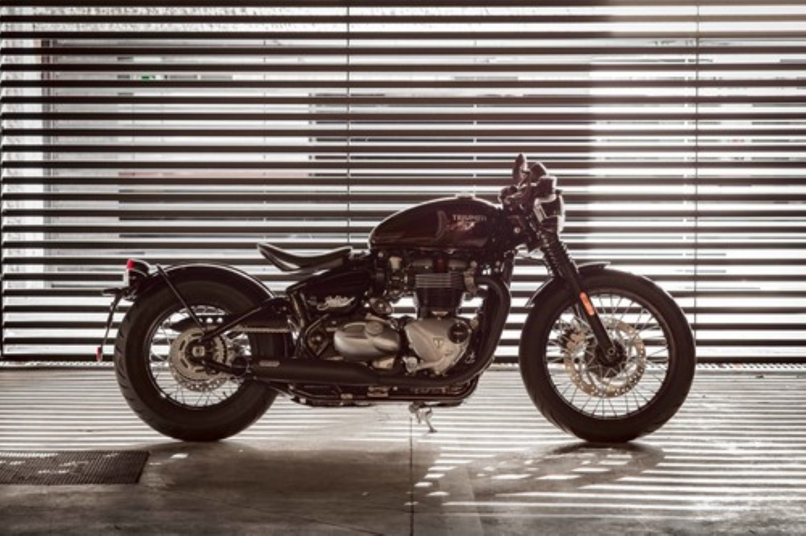 Die Boneville Bobber wird von einem 1200er 2 Reihe-Motor angetrieben. Dieser Motor bringt mit einer Leistung von 77 Ps/ 56.6 kW 102 Nm auf die Strasse. Der Kettenantrieb wird über ein 6-Ganggetriebe angesteuert. Mit dem Trockengewicht von 220kg kann eine maximale Geschwindigkeit von 190 km/h erreicht werden.