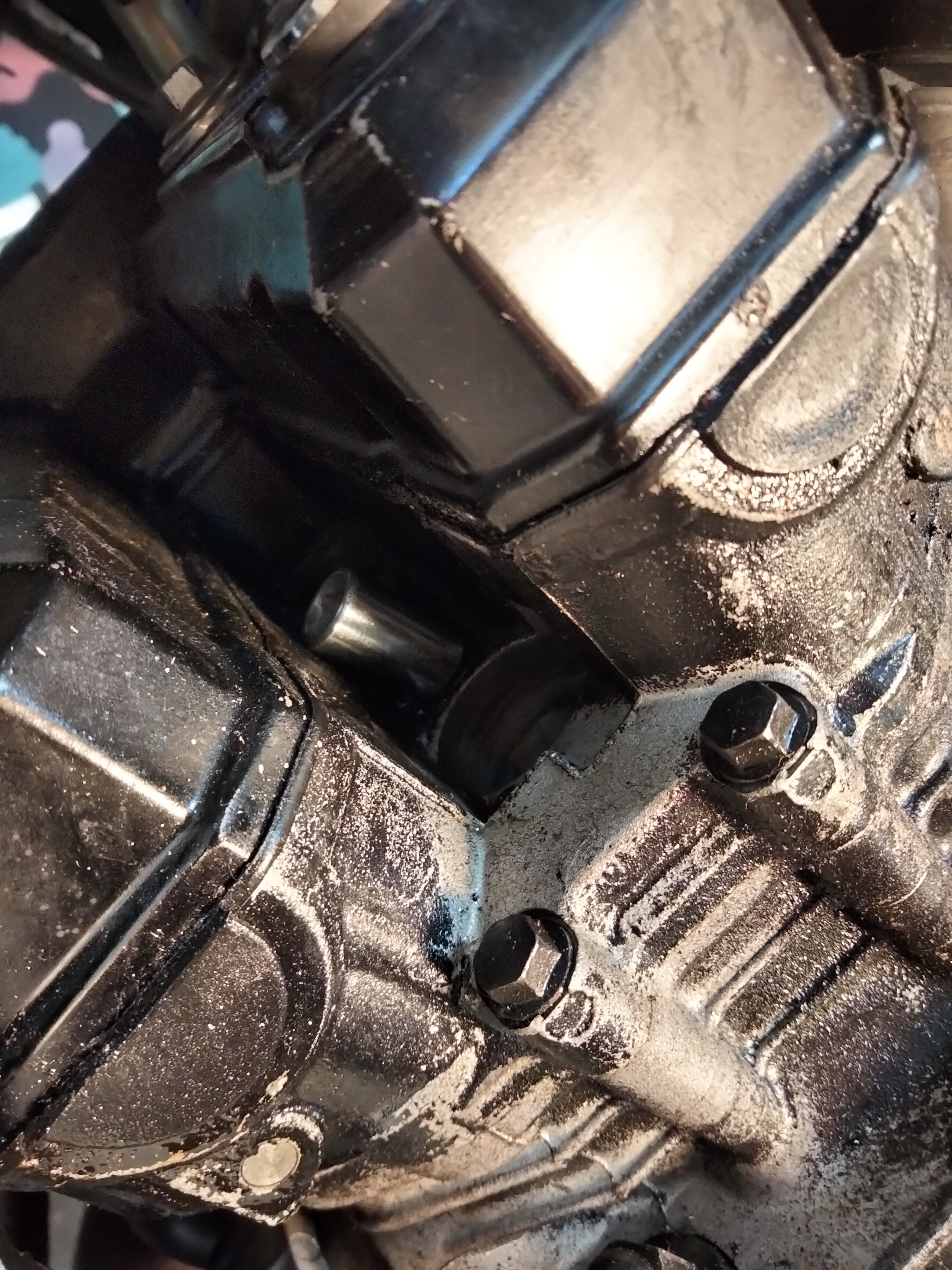 Nun musste nur noch der Zylinderkopfdeckel demontiert werden, neue Dichtung drauf, Zylinderkopfdeckel wieder montieren und neues Öl nachfüllen. Nur... Damit der Zylinderkopfdeckel demontiert werden kann, muss der Kühler weg. Da gibt es zwei Schrauben, links und rechts oben, die fühlt man knapp aber sehen kannst du sie nicht. Der Tank und Luftfilterkasten muss nicht demontiert werden, das kann ich euch als Erfahrungswert mitgeben. Als ich den Zylinderkopfdeckel endlich entfernen konnte fand ich auch gleich eine, schon länger, vermisste Nuss.
