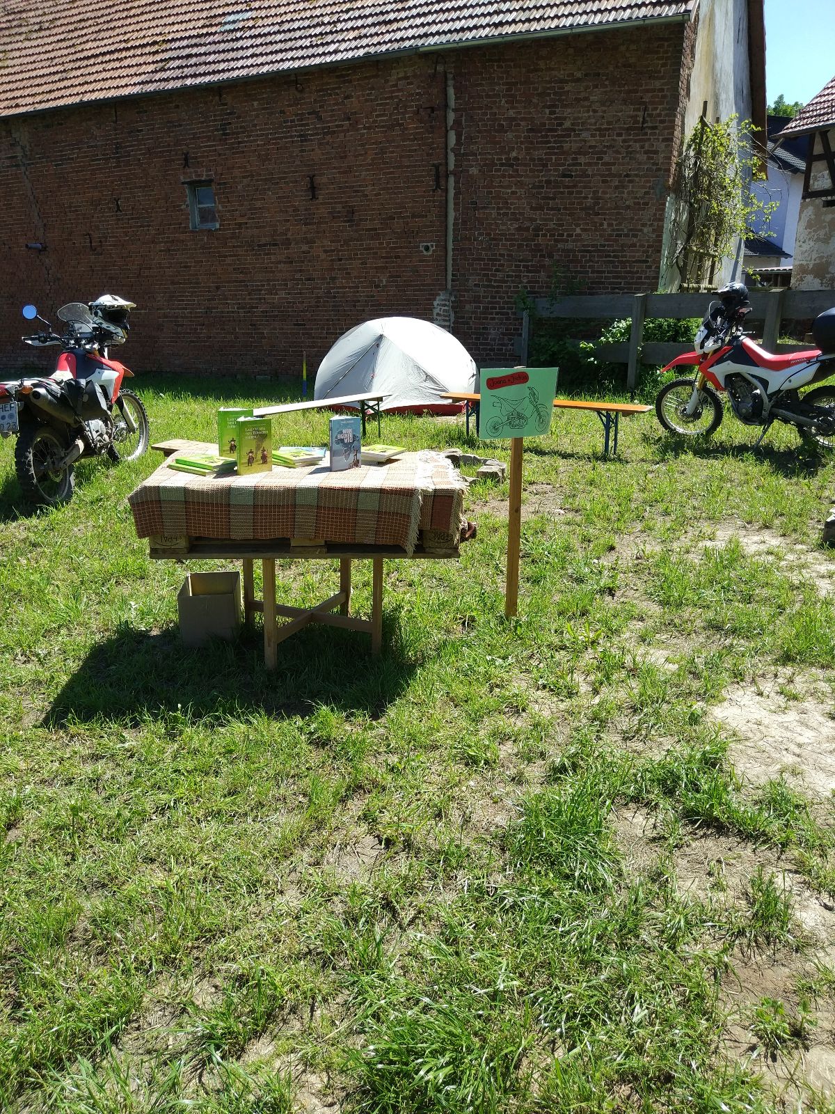Ich durfte noch in den Zivilschutz und so kam ich erst Freitag abends auf die Strasse. Boah mit Motorrad und Gepäck wieder unterwegs zu sein war so ein befreiendes Gefühl, unbeschreiblich geil! Endlich wieder auf Tour! 5.5 Stunden später, um 11, war ich dann auch in Wehrda auf dem schönen Zeltplatz angekommen. Nach der herzlichen Begrüssung stellte ich mein Zelt auf und schlief schon bald tief und fest.