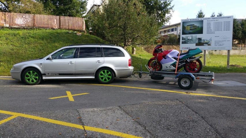 Wir trafen uns jedoch immer wieder auf der Strasse mit unseren Motorrädern oder auch abends in den Bars unserer Region. Eines Abends, nach ein paar Bier, kamen wir auf das Thema Motocross. Severin erzählte mir, dass er nicht mehr aktiv fährt und alles eigentlich zum Verkauf stehe, auch sein Anhänger. Ich sah meine Chance und kaufte ihm noch am selben Abend für wenig Geld und ein paar Bier den Anhänger ab. Ohne Auto, geschweige dem einen Autoführerschein aber haben, ist besser wie brauchen, dachte ich mir. Wie es der Zufall wollte, fand Marius, ein weiterer guter Freund, am nächsten Tag ein interessantes Inserat für eine KTM SM 990. So fuhren wir noch am selben Wochenende mit dem neuerworbenen Anhänger nach Sargans. Ihr kennt es euch denken, auf dem nach Hause Weg freuten sich zwei. Marius über seine neue KTM und ich über den neu erworbenen und nun eingeweihten Anhänger. So wurde er regelmässig von Freunden gebraucht und irgendwann kam mein Autoführerschein und WG-Auto. Ein Skoda Oktavia 4x4. Nun konnte ich selbständig rumdüsen und Motorräder von A nach B verschieben, was ich auch tat.