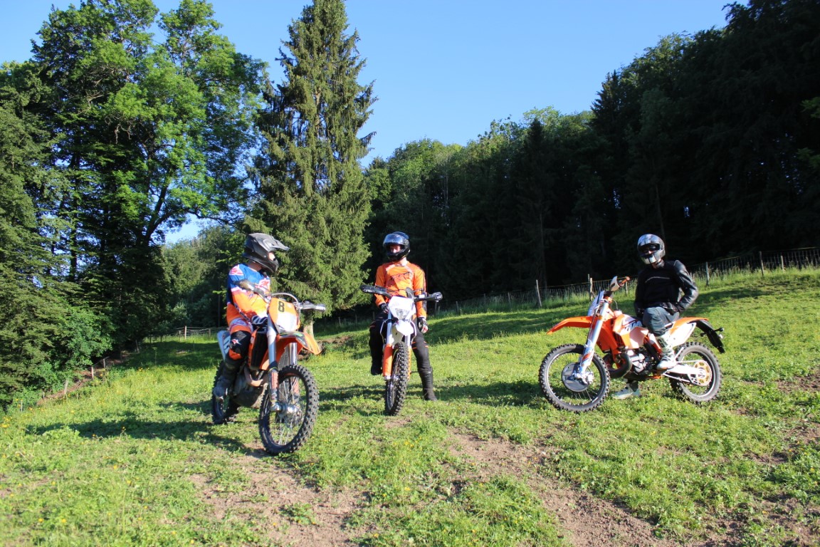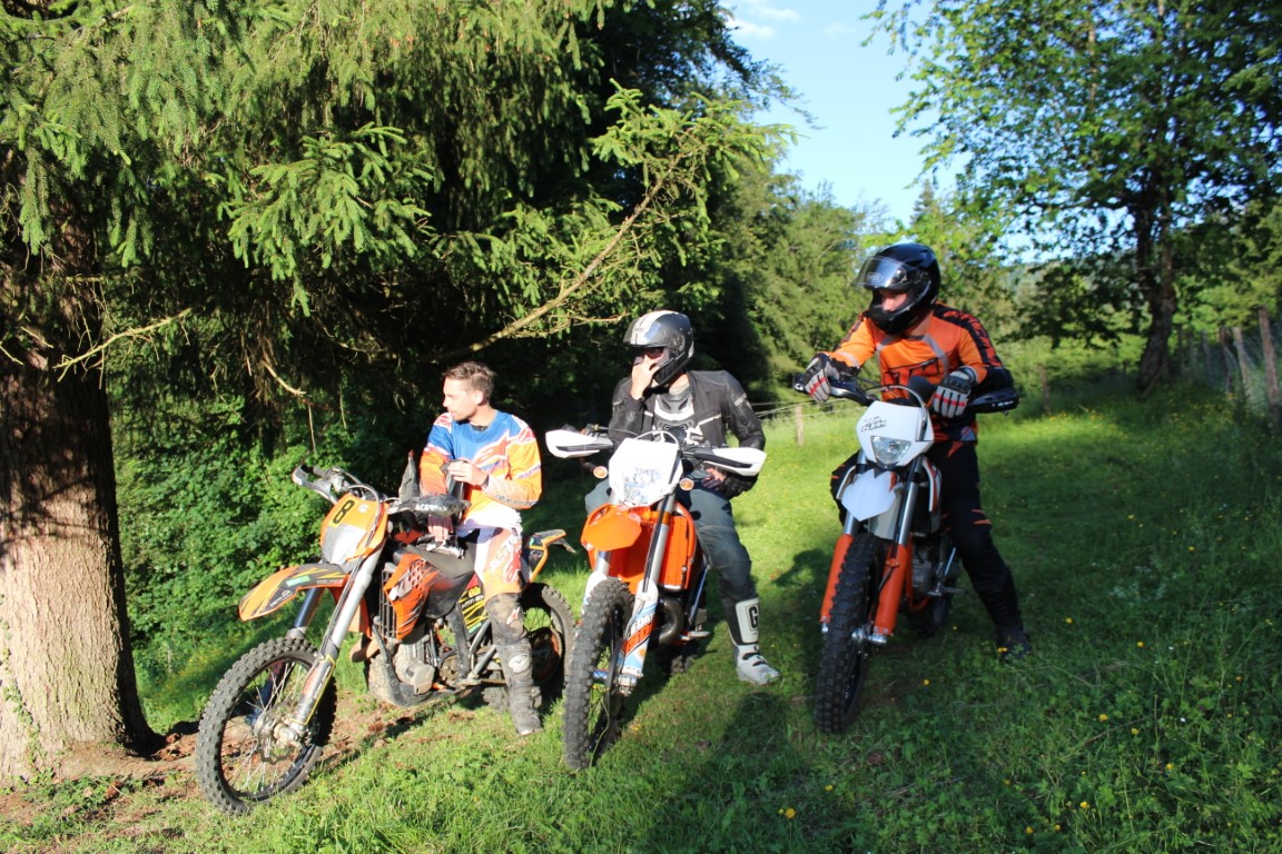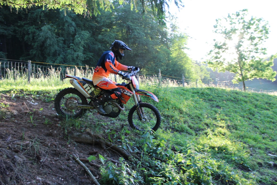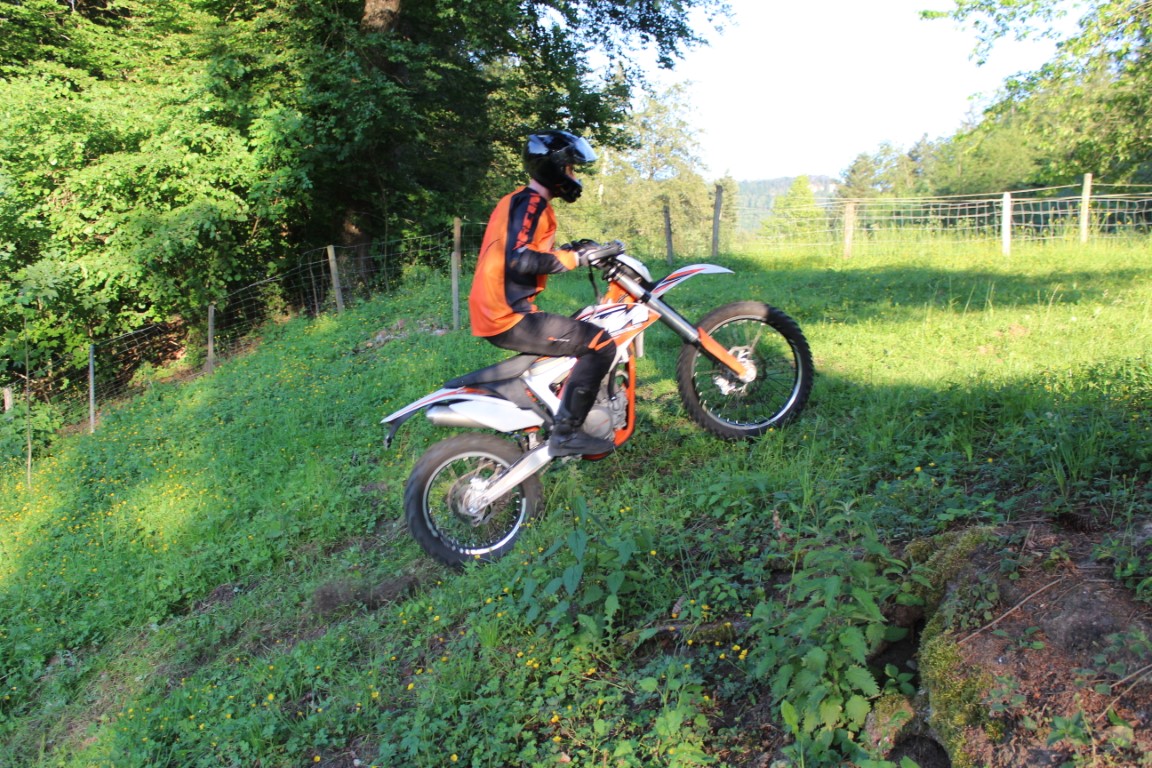 Die KTM-Seuche hat nun nicht nur die Motorradschlampe sondern noch zwei weitere Freunde erwischt. Enduro ist das Grosse Thema. Neben der KTM EXC 450 kam nun noch eine KTM Freeride 350 und eine KTM EXC 300 six days(2Takt, klingt sau schön!!) dazu. Diese Schönheiten machen sich ja ganz gut in der Garage aber eigentlich fühlen sich die Maschinen im Gelände so richtig wohl und dafür wurde gestern Abend gesorgt. Der eine kannte seine Diva schon etwas, der andere sass das erste Mal drauf und es ging um das erste beschnuppern, kennenlernen. Was an der Kleidung und auch an der Sitzposition/ Haltung zu erkennen ist. Ich hatte die Aufgabe Fotos zu machen und sehr hilfreiche Tipps zu verbreiten, kam ab und zu auch gut an. Damit ich mich hier nicht noch ins verderben schreibe, hier sind die Bilder, viel Spass!