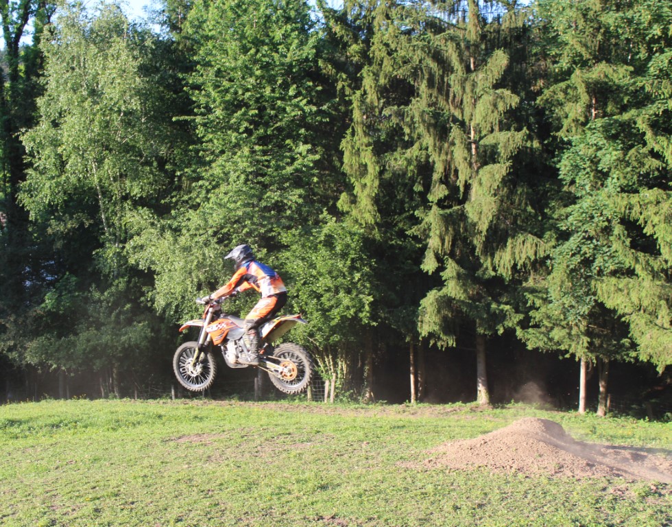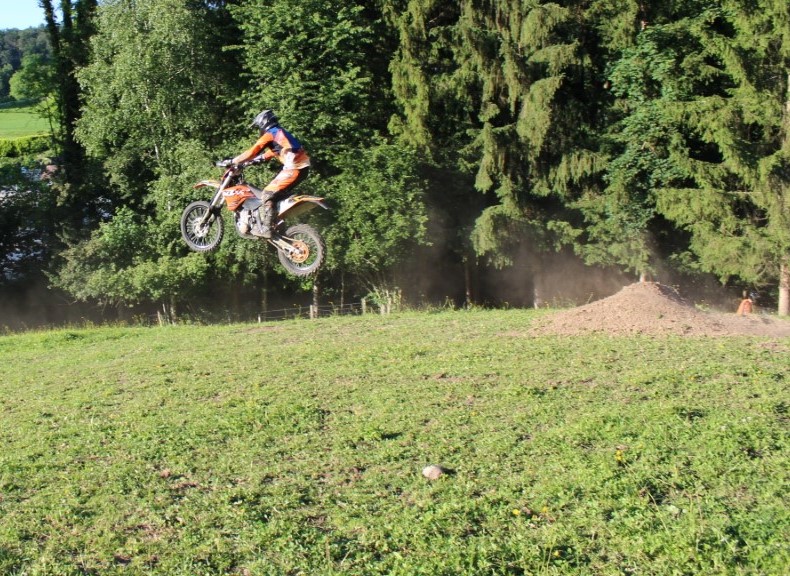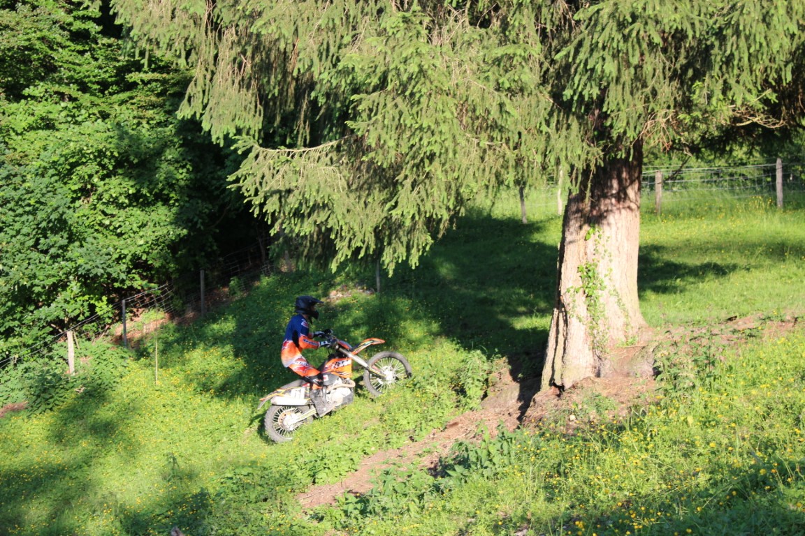 Zum Schluss wurde es dann doch noch etwas technisch. Ein Steilhang hoch, oben um den Baum und dann wieder runter. Ausser fleigende Motorräder gab es an dieser Stelle nicht viel interessantes für den Zuschauer zu sehen, höchstens ein rennender Kameramann.