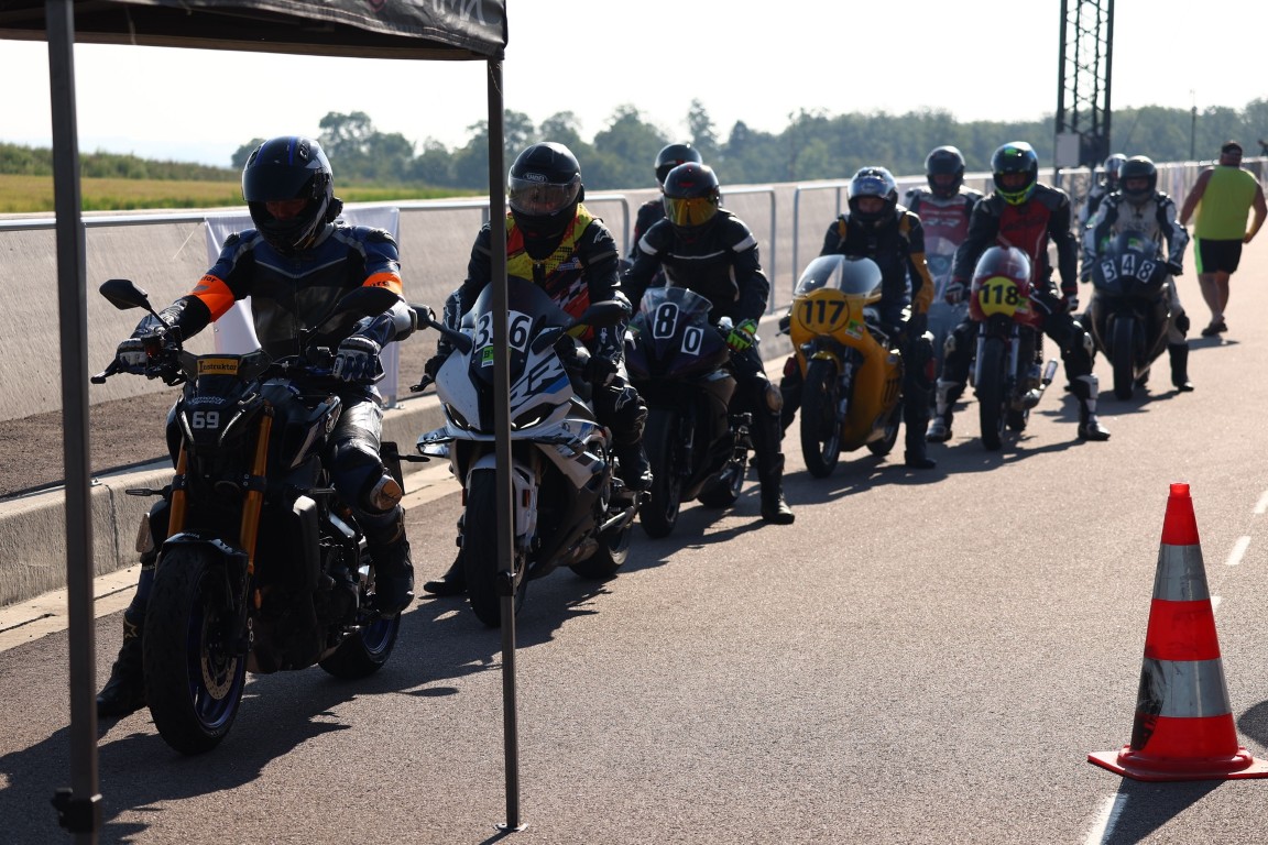 Da Joel und ich in der langsamsten Gruppe waren, ging es für uns direkt nach dem Fahrerbriefing los. Das hieß: schnell in den Kombi und ab aufs Motorrad. Da ich oft – aber nicht immer – zu früh dran bin, musste ich jeweils am Ausgang der Boxengasse warten. Hier stieg der Blutdruck noch etwas weiter, aber auch die Vorfreude.