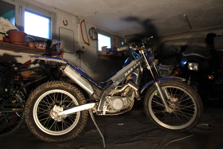 Nun stand sie lange rum, letzte Weihnachten hatte ich sie endlich wieder zum laufen gekriegt. Leider gibt es aber noch vieles an ihr zu flicken und reparieren. Grundsätzlich muss sie genralüberhollt werden. Im Winter haben die Motorräder mit Strassenzulassung jedoch Vorrang und die Gasgas muss noch ein bisschen warten. Denn 2-Takt Klang vermisse ich jedoch schon!