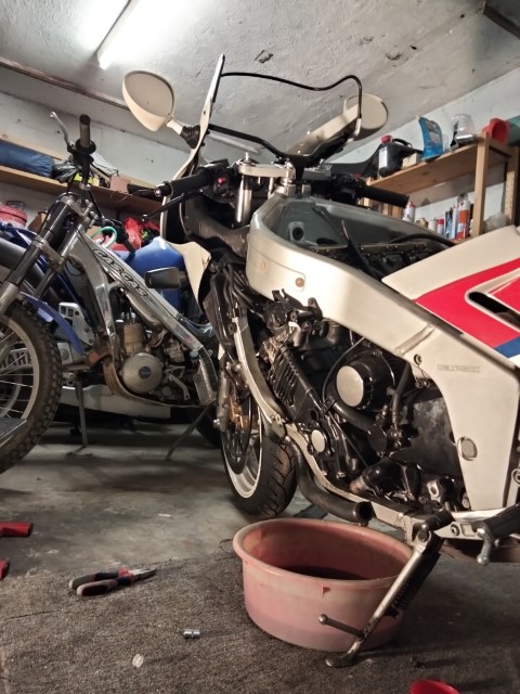 Wir mussten jedoch bis zum heutigen Tag einiges tun: Kettenkit ersetzten, Gabelrevision, Kupplungsgeberdichtung erneuern, neue Reifen und die Ansaugstutzen ersetzen. Nun ist sie aber soweit Fertig und wartet nur darauf im Frühling wieder auf die Strasse zu kommen. Ich freue mich.