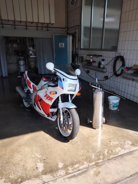 Nach dem Verkauf meiner wunderschönen Suzuki GSXR 750, war ich auf der Suche nach einer neuen Rennmaschiene aus den frühen 90er oder sogar 80er Jahren. Ich war in dieser Zeit ein regelmässiger Besucher von Motoscout und tutti.ch. Habe ich dann mal was gefunden, teilte ich dies natürlich mit meinen Freuden. So richtig entscheiden konnte ich mich nie richtig. Irgendwann war dann auch Iussi wieder einmal auf der Suche nach einem neuen Motorrad, es sollte ein Oldtimer sein. Er fand eine Zündap, es ging nicht lange und zusammen mit Thomi, fuhren wir los in den Kanton Bern. Wir wollten nur schauen, den Anhänger hatten wir nur zur Sicherheit dabei. Der damalige Besitzer der Zündap, war einer wie wir, einfach älter. Er hatte mehrere Scheunen voll mit Motorrädern aber auch Autos. Diese Motorräder waren alle älter, auch in meinen bevorzugten Jahrgängen. Als er die letzte Garage aufgemacht hatte, stand da eine FZR 1000, es war genau die, die ich schon mehrmals online angeschaut hatte. Dies wusste auch Iussi. Ich hatte aber gehofft, dass Iussi es nicht bemerkt. Er hatte es bemerkt und den Besitzer gefragt ob er sie nach vorne nehmen kann. Sie lief sogar. Wir bestaunten sie, ich kam ins träumen, was leider nicht unbemerkt blieb. Ich blieb jedoch vernünftig und der Besitzer verräumte die FZR 1000 wieder in der Garage. Die Zündapp, die sich Iussi ausgewählt hatte, wurde natürlich gekauft und in den Hänger von Thomi gebracht. Kaum waren die Türen vom Auto verschlossen, begannen die beiden, Thomi und Iussi, damit mich zu überzeugen, dass ich dieses Motorrad doch kaufen sollte. Sowas finden wir so schnell nicht wieder, meinten sie. Ich konnte nicht lange stand halten und nach zwei Kreiseln und einem Telefonat mit dem Besitzer standen wir wieder vor der Yamaha FZR 1000. Nach einer kurzen Verhandlung kaufte ich das Motorrad und sie wurde in den Anhänger eingeladen, den wir nur sicherheitshalber dabei hatten.