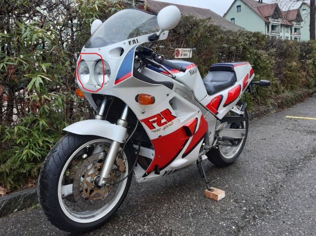 Eines steht aber in naher Zukunft noch an. Die FZR 1000 ist hübsch aber noch nicht richtig Hübsch. Die FZR hat keinen Doppelscheinwerfer. Das war in den 80ern in der Schweiz nicht erlaubt. Da es aber in den anderen Ländern erlaubt war ist es einfach umzubauen. Leider fehlt mir das Plastikteil zwischen den Scheinwerfern. Ich habe die Masse von einem Originalteil erhalten und versuche es nachzubauen. Ihr werdet es hier erfahren wenn ich erfolgreich war.