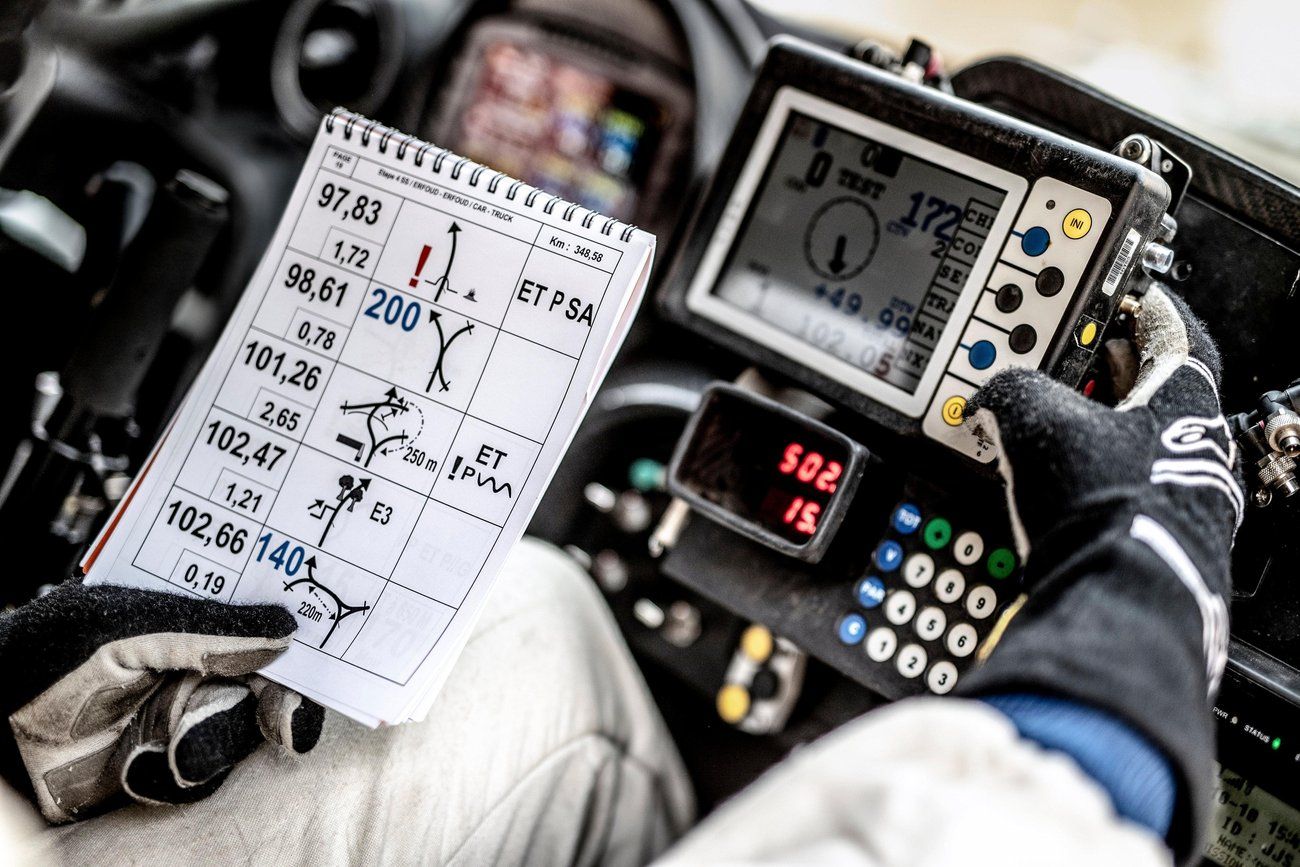 Eine Rally ist so aufgebaut, dass man in verschiedenen Etappen eine vorgegebene Strecke abfährt. Diese Strecke darf man innerhalb einer gewissen Toleranz nicht verlassen. Der eine oder andere schlaue Fuchs denkt sich jetzt, easy Navi an und los gehts. Weit gefehlt, es wird mit sogenannten Roadbooks gefahren. Das kann man sich wie folgt vorstellen, man notiert und zeichnet alle Aussagen auf, die die nette Dame aus dem Navi machen würde plus Topologie, geographische Merkmale oder den Untergrund. Im Auto, LKW oder SSV, ist ein Beifahrer der dem Fahrer über Funk erzählt wo wie und was. Zum Roadbook kommen da natürlich noch Messinstrumente wie Kompass oder Kilometerzähler, auf GPS-Basis, dazu. Auf dem Motorrad oder Quad, ist das ganze Roadbook vom Tag auf einer Rolle aufgerollt. Der Pilot muss auf dann die Rollen selbst betätigen, so dass sich das Roadbook auf die unter Rolle verschiebt und der Fahrer die aktuellen Infos sehen kann.