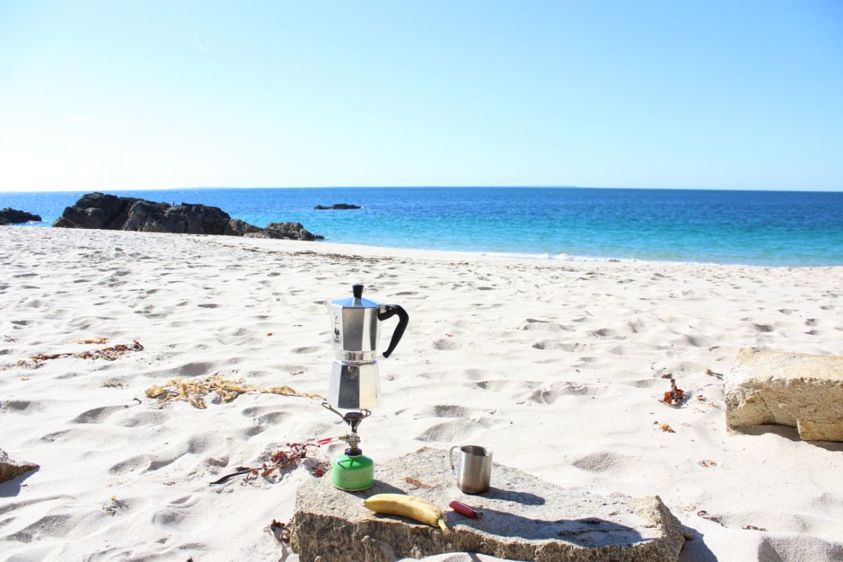 Am Tag nach der Nacht am Strand mit Schlafsack, fahr ich weiter an der Küste entlang. Der Tag ist wiederum sehr schön aber unspektakulär. Abends übernachte ich in einem Camping für 7 Euro, geschenkt!! Schon am Abend entdecke ich ein Zelt mit einem Fahrradreisenden, jedoch ist niemand da. Am nächsten Tag, seh ich den Fahrradfahrer und freu mich riesig, ich lade ihn zum Kaffe ein und er freute sich somit auch mächtig, da er kein Platz für eine Kaffeemaschine hatte. Wir plaudern etwas und freuen uns beide, dass man auch normale Leute auf einem Camping antreffen kann. Er erzählt mir, dass es in Frankreich erlaubt ist überall zu campen, wenn man das Zelt erst eine halbe Stunde vor Sonnenaufgang aufstellt und eine hlabe Stunde nach Sonnenaufgang abbaut. Geilo! Am Nachmittag sitze ich am Strand des Atlantiks und trinke einen Kaffee. Zuerst halte ich nur die Füsse rein, doch dann denke ich, man du bist nur einmal hier, und geh gleich baden, supa!!