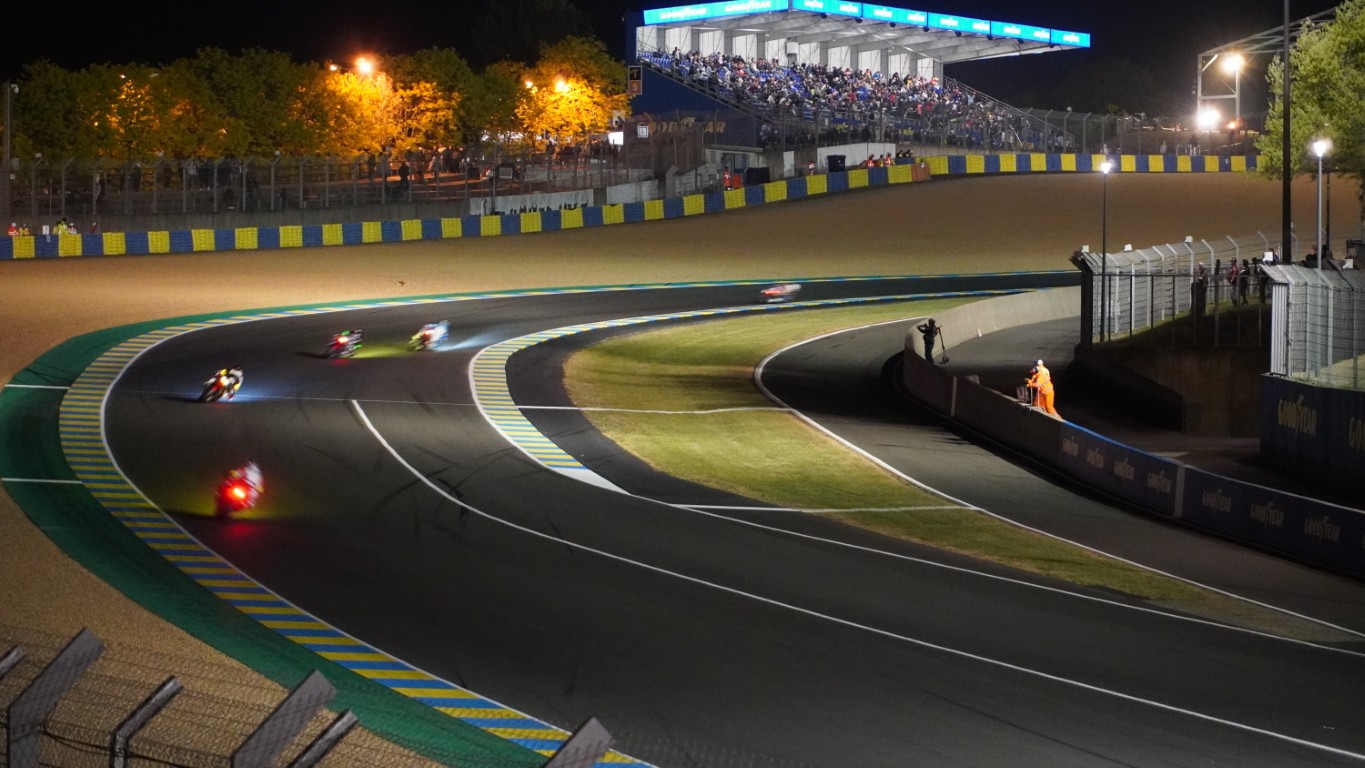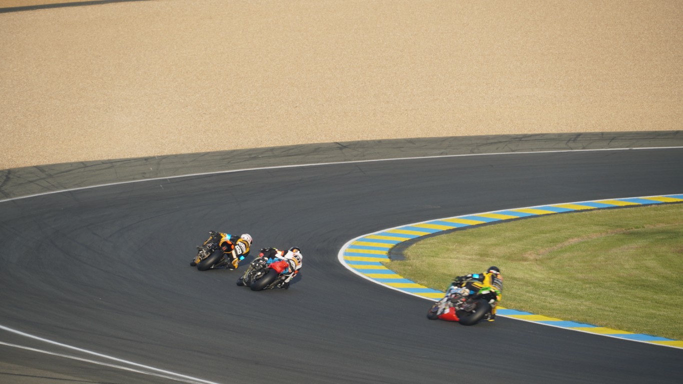 Dann kamen die Securitys und ich musste die Startaufstellung verlassen. Mirko, der Social-Media-Verantwortliche vom Team Bolliger, fragte mich, ob ich mit ihm zur ersten Kurve komme, um den Start anzusehen. Ich freute mich und ging mit. Oben angekommen, genossen wir die französische Nationalhymne, die mit viel Herzblut gesungen wurde und überall auf der Rennstrecke zu hören und zu spüren war. Dann ging es schon los und die 60 Motorräder bretterten an uns vorbei. Eindrücklich, aber leider habe ich den legendären Le-Mans-Start so verpasst. Wir wechselten noch ein paar Mal die Position und machten unsere Aufnahmen. Alex ist der Start geglückt, er fuhr von Startplatz 14 auf 10. Nach 20 Minuten wurden dann schon die ersten überrundet. Ich wollte nicht zu lange draussen an der Strecke bleiben, denn ich wollte beim ersten Fahrerwechsel und Boxenstopp dabei sein.