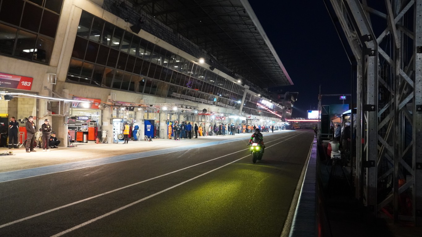 Während dem Nachttraining gehe ich noch bei Marco vorbei. Marco sitzt vor zwei Bildschirmen, auf einem sind ganz viele wirre Diagrammlinien zu sehen, sie stellen Messwerte dar, wie ich später erfahre. Er ist für alles zuständig, was Performance angeht, das heisst Elektronik, Fahrwerk oder die Reifen fallen in seine Verantwortung. Er fällt anhand von ca. 40 zusätzlich verbauten Sensoren, was am Motorrad geändert oder optimiert werden muss. Und dann ist es schon soweit, Alex kommt zurück in die Box und das Nachttraining ist zu Ende. Jetzt gibt’s noch ein «Plättli» zum Tagesabschluss. Ich freue mich auf morgen!