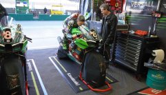 In der Zeit, in der ich nicht wirklich vorwärtskomme, machen die Mechaniker grosse Fortschritte. Sie bereiten das Rennmotorrad für morgen vor. Neue Kupplung, neuer Kühler, neuer Auspuff und das Getriebe wird geöffnet und kontrolliert. Das Ganze sollte vor dem Pitwalk, bei dem alle Zuschauer in die Boxengasse kommen dürfen, fertig sein. Und das war es auch. Wenig überraschend nach dem, was ich hier alles erlebt habe. Da die Box immer voller wird mit Besuchern und ich noch diesen Text schreiben wollte verzog ich mich in das Media Center und schaut mal welchen Ausblick ich hatte(letztes Bild).