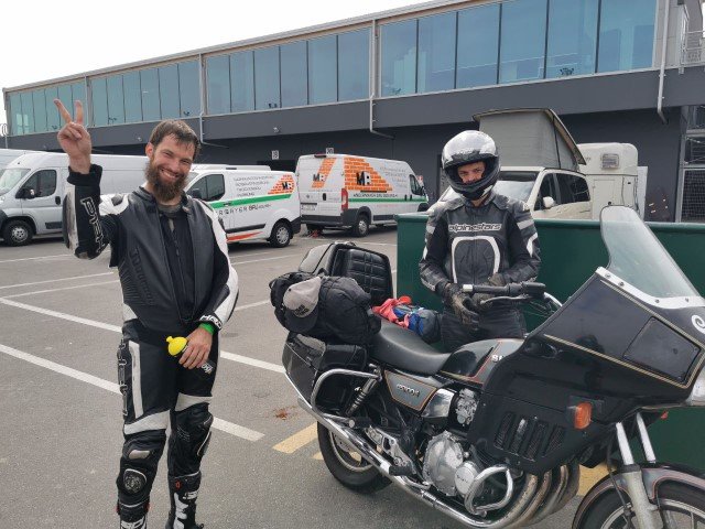 Irgendwann kamen wir endlich auf die Autobahn und dies bei bestem Wetter. Wohin geht es eigentlich? Es geht wieder in Richtung Norden, aber bevor wir direkt nach Hause fahren, gibt es noch eine ordentliche Portion Motorrad. Wir waren auf dem Weg nach Cremona, wo zwei Freunde auf der Rennstrecke ihre Runden drehten. Heinz Günther, das Navi, fand natürlich die Strecke nicht und wir fuhren erst in die falsche Richtung. Zum Glück hatte ich meine Freundin auf dem Rücksitz mit dabei und die konnte Heinz Günther unterstützen. So fanden wir schon bald die Rennstrecke in Cremona und unsere Freunde, Thomi und Köbi, die schon ihr erstes Bier genossen. Ei freute ich mich die beiden zu sehen, wir haben es geschafft. Der Helm war noch nicht richtig abgezogen, streckte mir Thomi schon ein kühles blondes entgegen. Heieiei tat das gut, das hatten wir uns auch verdient. Irgendwann durften wir vom Parkplatz in die Box verschieben. Ich wurde ganz aufgeregt, ich bin endlich mal auf einer richtigen Rennstrecke. Überall standen Rennmotorräder, Reifen und Werkzeuge und mittendrin ich mit meiner Suzuki GS. Bei der richtigen Box angekommen halfen wir beim ausladen und ich begann zu kochen. Abends kamen dann noch weitere Freunde von unseren Freunden. So gab es Abends dann ganz viele interessante Geschichten zu hören und auch schon den einen oder anderen Motorradmotor. Nach ein, zwei Bier und unzähligen Geschichten, ging es ins Bett. Wir durften in Thomis Bus schlafen, was für ein Luxus. An dieser Stelle Danke nochmals!