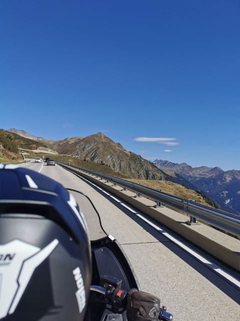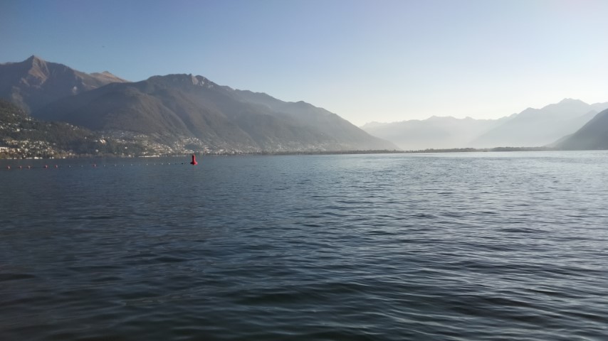 Am Mittag hiess es dann aber leider, schon wieder, adieu. Wir machten uns auf den Weg nach Hause, wobei ein letzter Stopp im Tessin geplant war. Die Fahrt bis Como verlief ganz gut. Bei den Zahlstellen waren wir schon ein eingespieltes Team. Ich fuhr nah an das Bedienelement und meine Freundin machte dann die Zahlung, so kamen zügig wieder weg. Doch schon früh vor Como wurde ein langer Stau angezeigt, irgendwo um Como. Also verliessen wir mit der letzten Ausfahrt vor Como, die Autobahn. Heinz Günther führte uns durch die Dörfchen des Grenzgebietes, bis wir irgendwann in der Schweiz ankamen. Wir wollten wieder nach Locarno, da wir dort einen Freund besuchen wollten. An diesem Tag gab es etwas mehr Verkehr vor Locarno und bald standen wir in einer kleinen, durchaus noch durchsichtigen, Wolke. Irgendwo schwitzt die Suzuki GS. Doch auch dieser Stau endete irgendwann und wir kamen wieder auf dem Camping Delta an, hatten sogar den selben Platz. Zu meiner Freude stand noch ein weiteres Motorrad da, eine Tenere 700, leider ohne Zelt und Besitzer. Am Abend ging es dann in die rund 10 Gehminuten entfernte Therme. Diese hat verschiedene Innenbäder und ein grosses Aussenbad mit Sicht auf den Lago Maggiore und das dahinter liegende Panorama. Was für ein Abschluss, das war sehr schön und erholsam.
