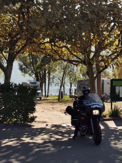 Am nächsten Morgen kam einer und quatschte mich wegen meiner GS an. Es war der Besitzer der Tenere 700 und erzählte dass er mit der Familie hier sei. Aber ab und zu gehe er dann Endurowege testen. Ich freute mich dass ich den Typ mit der Tenere doch noch kennen lernen durfte. Den Morgenkaffe aus der Bialettikanne, genossen wir an diesem Morgen direkt am Seeufer des Lago Maggiore. Und dann ging es über den Gotthard nach Hause. Es klappte alles super und ich freute mich als ich Zuhause mit meiner Freundin und der Suzuki GS 1100 GK ankam. Ja da war etwas stolz dabei.