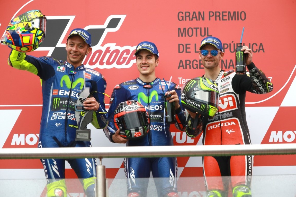 Gleich von Anfang an führte Marquez vor Vinales Crutchlow und Rossi. Leider hatte die Familie Marquez dieses Wochenende nicht allzu viel Glück und schon bald lag Marquez im Kies. Es sollte nicht der letzte sein. Denn fast gleichzeitig stürzte Alleskönner Lorenzo weil er einer Suzuki in den Arsch fuhr und warf danach sein Motorrad zurück ins Kies, dass muss Liebe sein! Bald konnte sich Vinales von Rossi und Crutchlow absetzten. Die beiden lieferten sich einen interessanten Zweikampf. Während des Rennens stürzten dann auch Pedrosa und Lowes auf seiner Aprilia. Somit war nun Team Honda schon im Feierabend. Alle Fahrer waren für Moto GP Verhältnisse nahe bei einander. Dies kam dem Pechvogel der gesamten Moto GP, Dovizioso, gar nicht gelegen. Als Espargaro auf der Aprilia ins Rutschen kam, nahm er Dovi gleich mit. Am Schluss gewann Vinales das zweite von erst Zwei GP Rennen, Rossi wurde Zweiter und Crutchlow wurde Dritter.