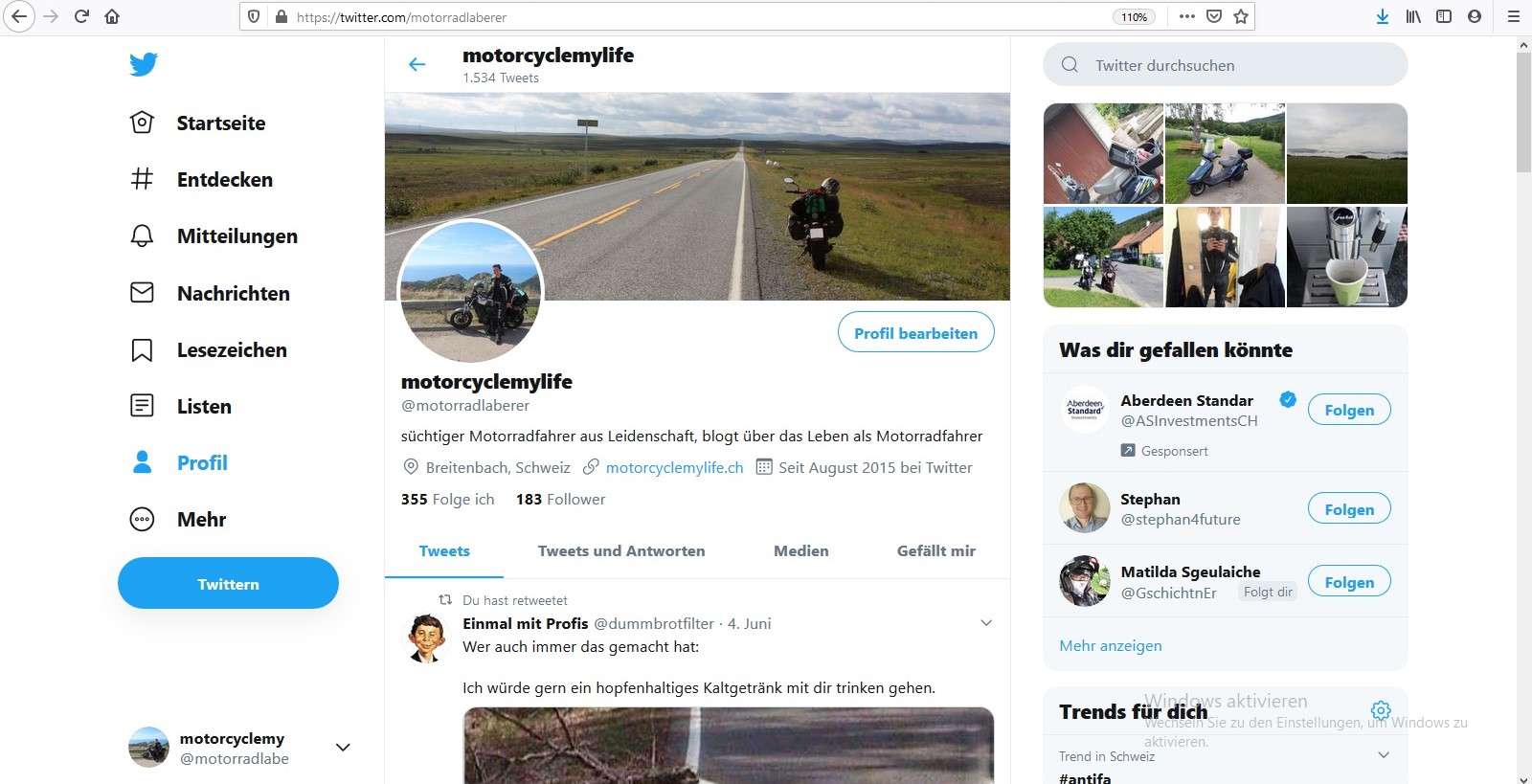 Wenn du neben den Blogbeiträgen noch etwas hochstehendes, schlaues und informatives Blabla lesen möchtest, dann bist du auf Twitter genau richtig. Auch hier, Link anwählen und folgen drücken.