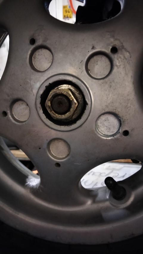 5.Radmutter: Wenn der Auspuff demontiert ist, sieht man eine Abdeckung die nicht wirklich mit irgendeinem Werkzeug bearbeitet werden kann. Dies ist nur eine Abdeckung damit die Splinte die Mutter fixieren kann. Nach dem die Splinte entfernt ist, kann diese Abdeckung mit einem Schraubenzieher entfernt werden. Dies ging sogar bei meiner Vespa recht einfach. Danach kann die darunter liegende Mutter entfernt werden und man hat endlich das Hinterrad in der Hand.
