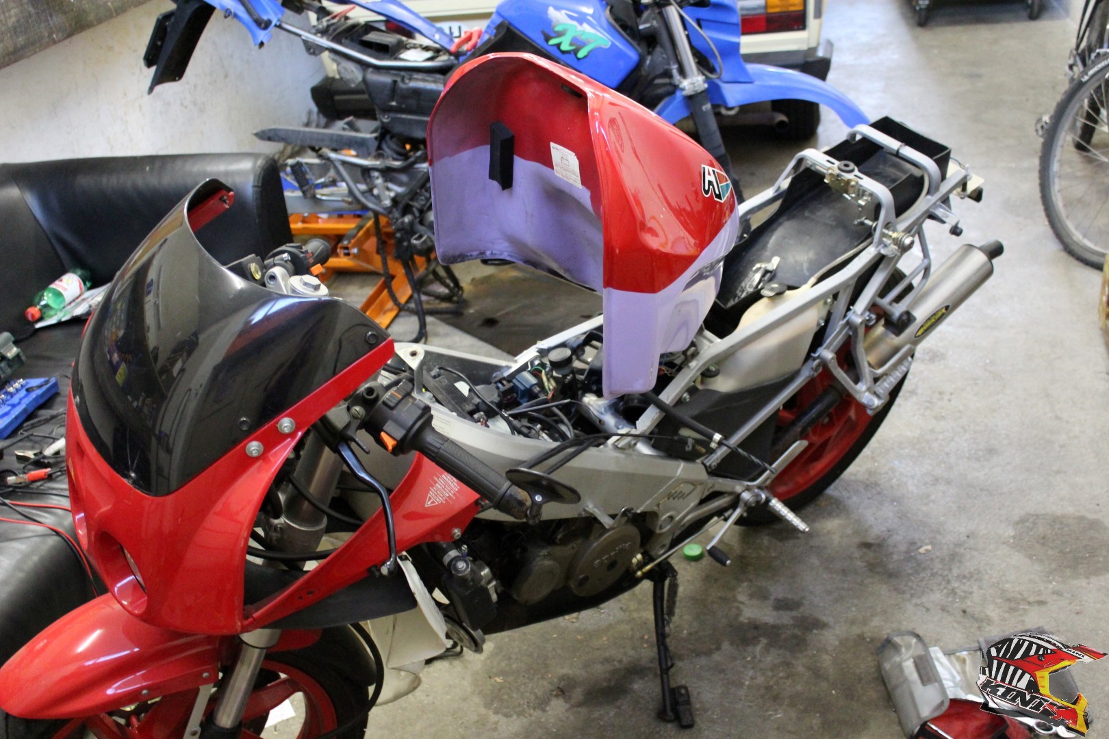 Im Herbst kam dann noch ein neues Projekt dazu. Mein Mitbewohner hat eine Aprilia AF1 125 mit Jahrgang 1988. Aber sie funktionierte noch nicht. Da es ein Zweitakter ist, nahm ich mir die Italienische Diva an und demontierte als erstes Den Vergaser und reinigte Ihn. Danach erhielt sie neues Benzin und Öl, bevor ich den ersten Startversuch machte. Und siehe da sie läuft. Jedoch hatten wir zu diesem Zeitpunkt noch ein weiteres Problem, der Tankdeckel liess sich nicht öffnen. Mit sehr viel WD 40 und Geduld konnten wir dann aber auch dieses Problem lösen. Nun muss sie nur noch MFK tauglich gemacht werden und kann dann schon im Sommer 2017 gefahren werden.