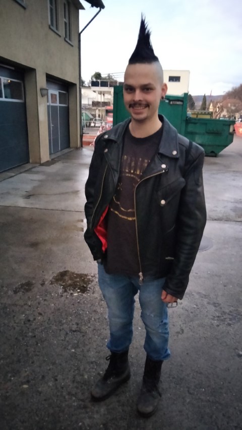 DieFasnacht begann und ich genoss sie in vollen Zügen. Am zweiten Fasnachtstag spielten wir in Nenzlingen, in einem sogenannten Kaff, an einem Guggenkonzert. Das Moto war Jagd, passend dazu war ich als Punk da. Es war ein sau gutes Fest mit coolen Guggen und coolen Leuten. Unter diesen Leuten war auch Dörig mit seiner Clique. Irgendwann um ein Uhr, schätze ich, kam Bibi zu mir, Dörigs Cliquen-Kollege. Er habe gehört dass ich ein Mofa hätte, das Sachs, dass Dörig sehr gefällt. Da Dörig in diesem Frühling 30 wird, möchte die Clique ihm dieses Mofa schenken. Inmitten von Fasnächtlern, mit Guggenmusik im Hintergrund und einem Bier in der Hand, erfolgte der Handschlag und das Geschäft war abgeschlossen. Bei einem feinen Kaffi-Lutz(Oder war es ein Holdrio?) wurde das Ganze dann besiegelt.