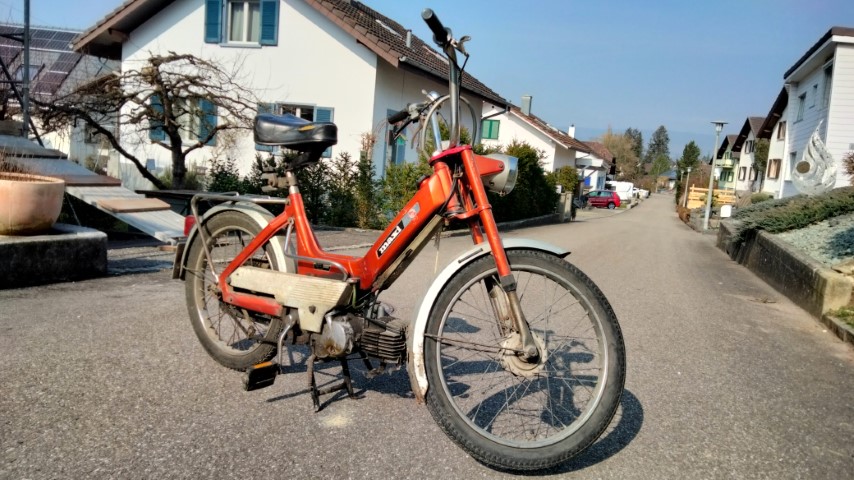 Nun standen die zwei schönen alten Damen bei mir in der Werkstatt aber ich konnte sie leider nicht behalten, denn es fehlt mir an Geld und Zeit. Da ich wenig Ahnung von diesen Fahrzeugen habe, lud ich einen befreundeten Mofa-Profi, Dörig, zu einem Bier ein. Nach vielen Worten und einigen Bieren weniger, war klar was ich für die zwei verlangen darf. Es war aber auch klar, dass das Sachs nicht weit weg darf. Mir gefiel es sehr, Dörig ebenfalls. Obwohl ich eine Nacht darüber schlief, hatte ich immer noch zu wenig Geld und Zeit. Ich konnte und durfte das Sachs nicht für mich kaufen. Die Fasnacht kam und ich verschob das Mofageschäft auf März. Soviel zur Theorie.