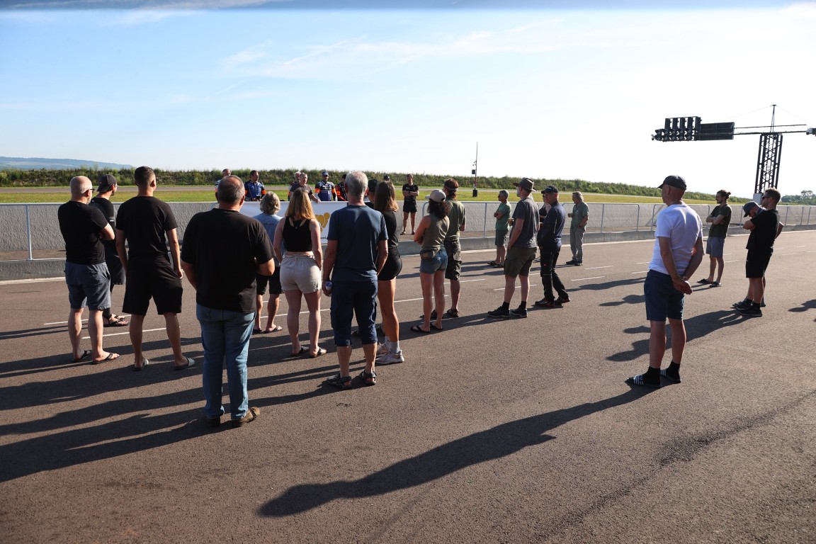 Beim Fahrerbriefing wurde erklärt, was man machen muss, wenn auf dem Display (früher waren es Fahnen) bestimmte Farben erscheinen. Grün bedeutet Vollgas, Gelb heißt, dass man in diesem Streckenabschnitt vorsichtig fahren muss, und bei Rot soll man zügig und vorsichtig herausfahren. Es wurde außerdem darauf hingewiesen, dass es Coaches zum Hinterherfahren gibt, sowie einen Physiotherapeuten und einen Fotografen. Zu diesem Zeitpunkt stieg mein Puls langsam an.