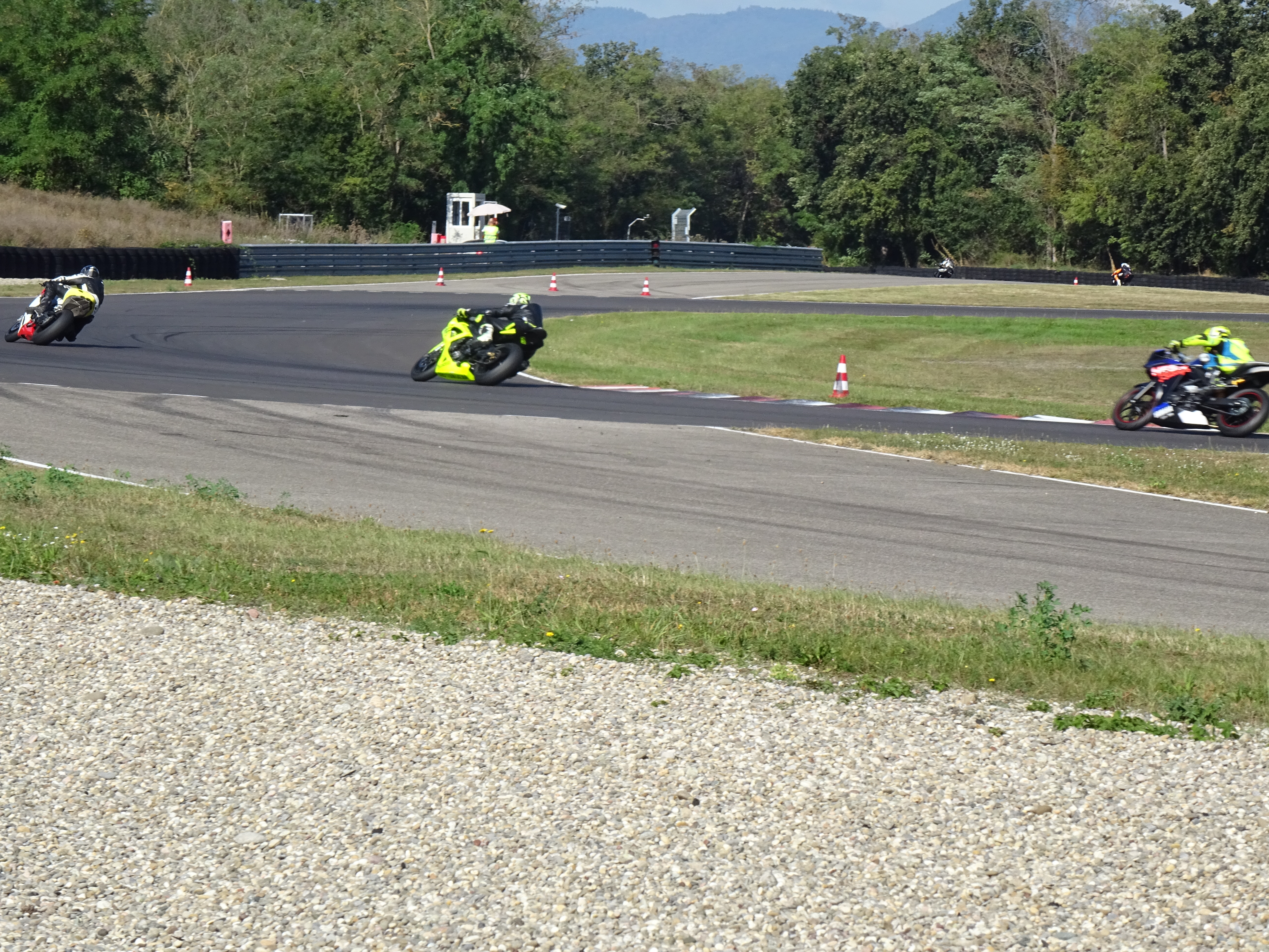 Als die zwei Zelte gestellt waren, startete schon die erste Gruppe. Meine Freunde sind alle auf die drei Gruppen aufgeteilt. Schnell, zügig und Anfänger. So konnte ich den ganzen Tag an der Strecke stehen und meinen Freunden zuschauen, es war einfach grossartig. Es war eineeine Aprilia RSV Mille, zwei Aprilia RSV4 RR, eine MV Agusta F4 1000rr, eine KTM Duke 890 R, eine KTM Duke 790 und eine Ducati Streetfighter(von rechts nach links).